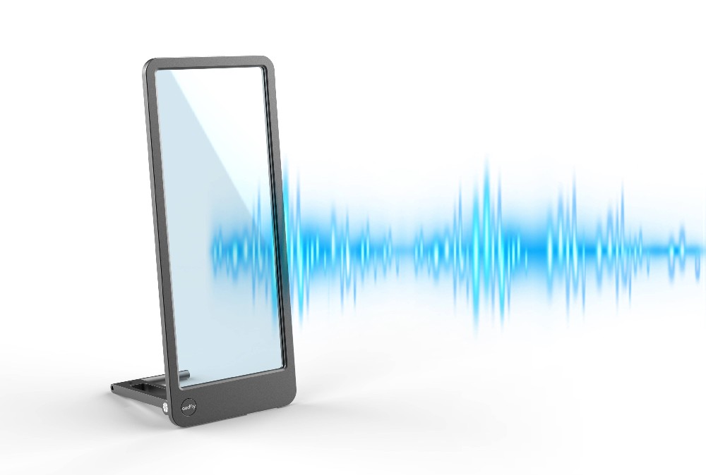 自研的原創技術聚音屏,是基于全透明薄膜的最新一代定向發聲技術,使用透明復合高分子 材料,采用顯示半導體工藝,構建亞微米三維立體微結構作為發生單元,結合自研的多通道聲輻射信號處理算法和專有硬件,實現屏幕定向發聲,創建專屬的個人聲場和空間音效。