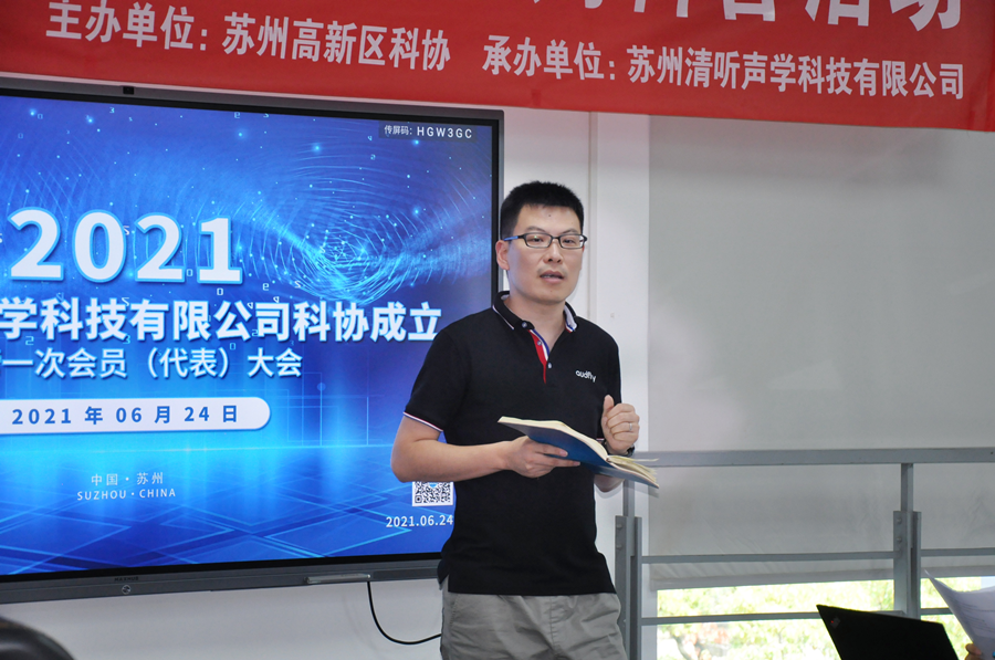 清聽聲學于2021年6月19日通過蘇州市科協籌備申請,經過科協籌備組的努力,成功獲得高新區科協《關于同意成立科學技術協會組織的批復》文件,清聽聲學籌備組負責人戴美祿宣讀了區科協批復,同時宣布蘇州清聽聲學科技有限公司科學技術協會正式成立!