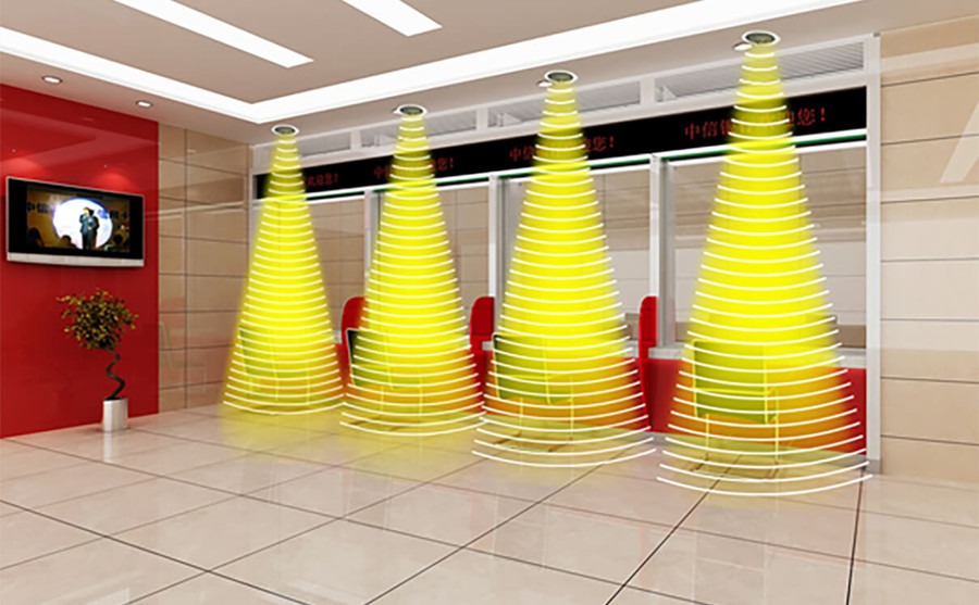 銀行:造成銀行辦事效率低的原因還在于銀行聲環境嘈雜,銀行整體聲環境優化旨在通過定向聲技術,改變銀行目前聲環境混亂的現狀,在銀行柜臺、自主服務區、等候區等多個場景使用定向音箱聚音寶,幫助銀行優化服務流程,滿足客服的個性化需求,提高銀行整體服務水平與效益功能。