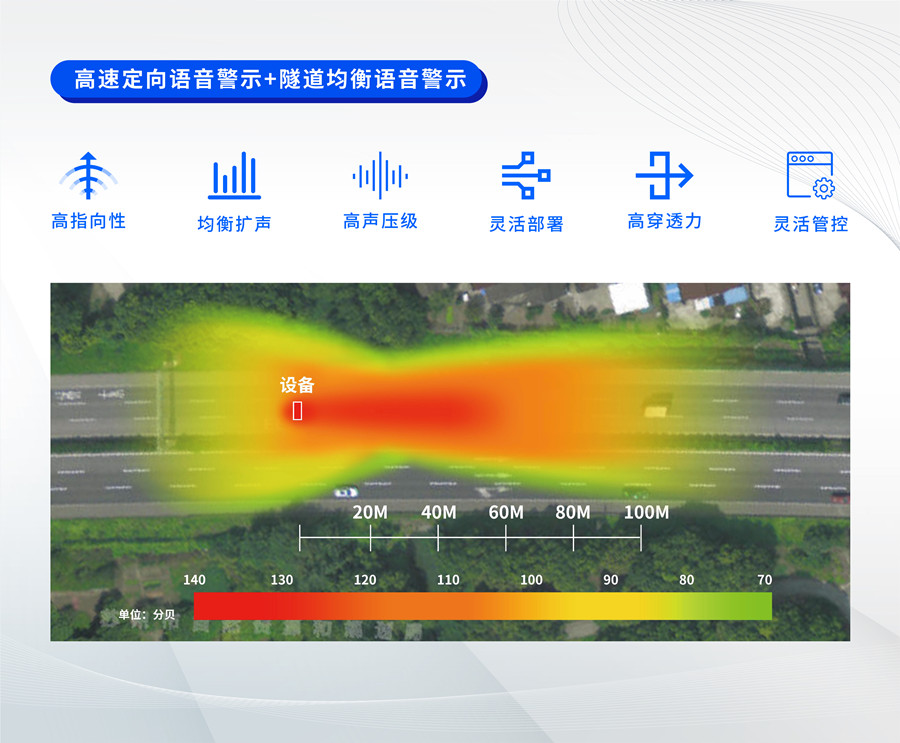 基于清聽聲學戶外定向聲算法升級,實現警示語音在復雜多變的戶外交通環境中沿指定方向、指定區域清晰傳播,不對反方向車道造成噪音污染,高聲壓級可穿透車玻璃,使司機提高警惕,防止司機因發呆、犯困、精神不集中而引發事故;實時播報資訊和現場調度信息,及時提醒司機,輔助司機提前做好應變準備,及時規劃行車路線,有效降低道路擁堵、事故及死亡發生幾率。