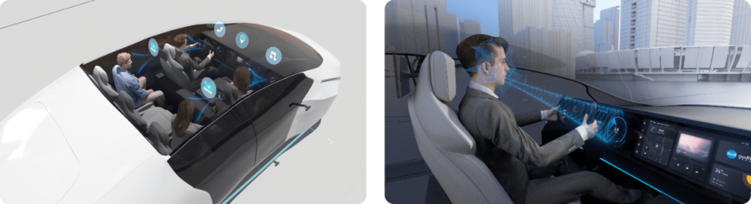 清聽聲學研創的智能座艙Focusound Screen™聲場體驗,巧妙地利用智能座艙中已有的大屏,并利用自研的多音區Multiple Sound Zone技術,直接通過屏幕給駕駛員創造獨立的專屬聲場,將導航信息、車載電話、提示音等聲音清晰地傳遞給駕駛員而不對其他位置的乘客造成干擾,同時還能精確再現聲音的空間方位。前排及后排乘員也能個性化定義音頻,擁有個人私密音區,解決出行途中通話/會議隱私保護、個性化音頻等需求,幫助用戶更安全、更舒適、更有樂趣地出行。