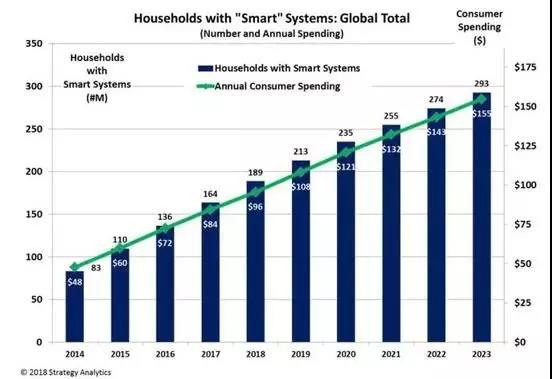 全球智能家居設(shè)備年銷售額(單位:百萬)