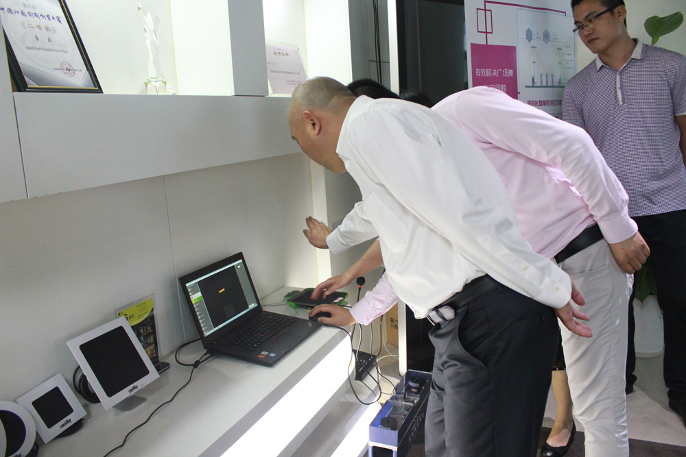 隨后,陳龍副部長(zhǎng)一行隨栗總來(lái)到里清聽(tīng)聲學(xué)展廳,了解并體驗(yàn)了更多聚音寶產(chǎn)品系列。清聽(tīng)聲學(xué)副總經(jīng)理匡正,同時(shí)也是蘇州高新區(qū)科技領(lǐng)軍人才,聚音寶研發(fā)中心的主要負(fù)責(zé)人,向大家解說(shuō)了聚音寶的主要工作原理,幫助大家進(jìn)一步了解聚音寶的聲學(xué)創(chuàng)新。陳龍副部長(zhǎng)還特別體驗(yàn)了一款有別于定向音響的黑科技——隔空觸感技術(shù),這是一項(xiàng)不需要直接接觸物體就能產(chǎn)生觸感的一項(xiàng)新技術(shù),讓物體的形狀通過(guò)超聲波的“力度”來(lái)反饋出來(lái)。匡總向陳龍副部長(zhǎng)一行解釋,這是清聽(tīng)聲學(xué)最新的研發(fā)成果,未來(lái)有望引領(lǐng)智慧生活。