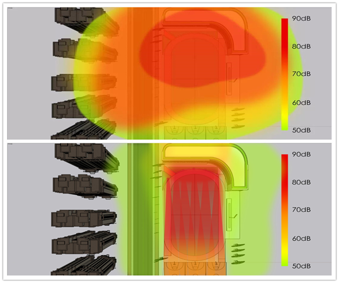 該方案通過專業的點位設計和聲學算法調整,實現操場區域內聲場均衡、語音清晰、語言流暢,符合戶外教學需求;操場區域外聲音遞減至聲環境環保值,對室內教學區、辦公區以及校園居民區形成相對的聲場保護,切切實實解決了操場廣播擾民問題。“安靜操場”聲學創新工程對校園生態環境建設起到一定的推動作用,也補足了城市聲環境建設中的關鍵一環。